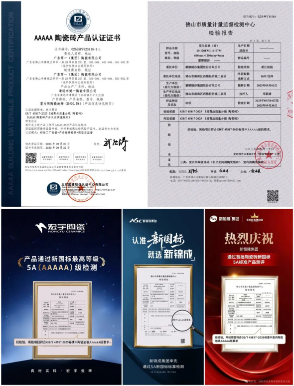• 多家陶企通過5A瓷磚認證!簡一、蒙娜麗莎、宏宇、新錦成、新恒隆…