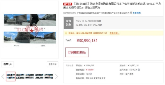 • 廣東一陶瓷廠“4.1折”3100萬元拍賣,因無人出價流拍